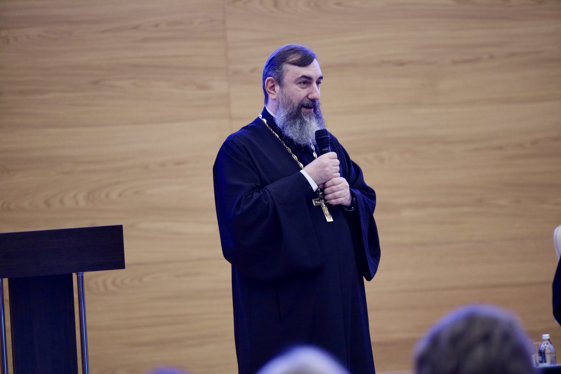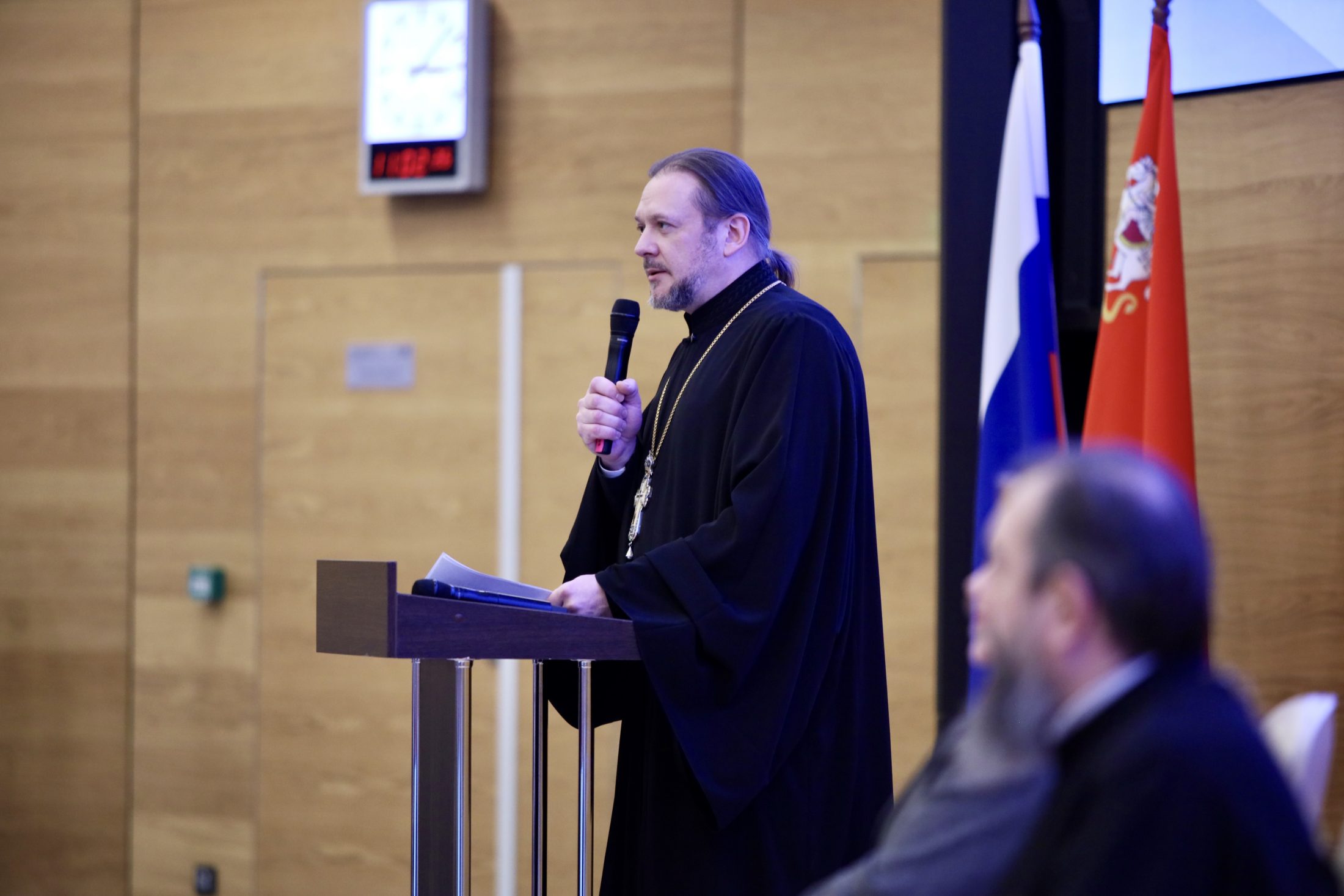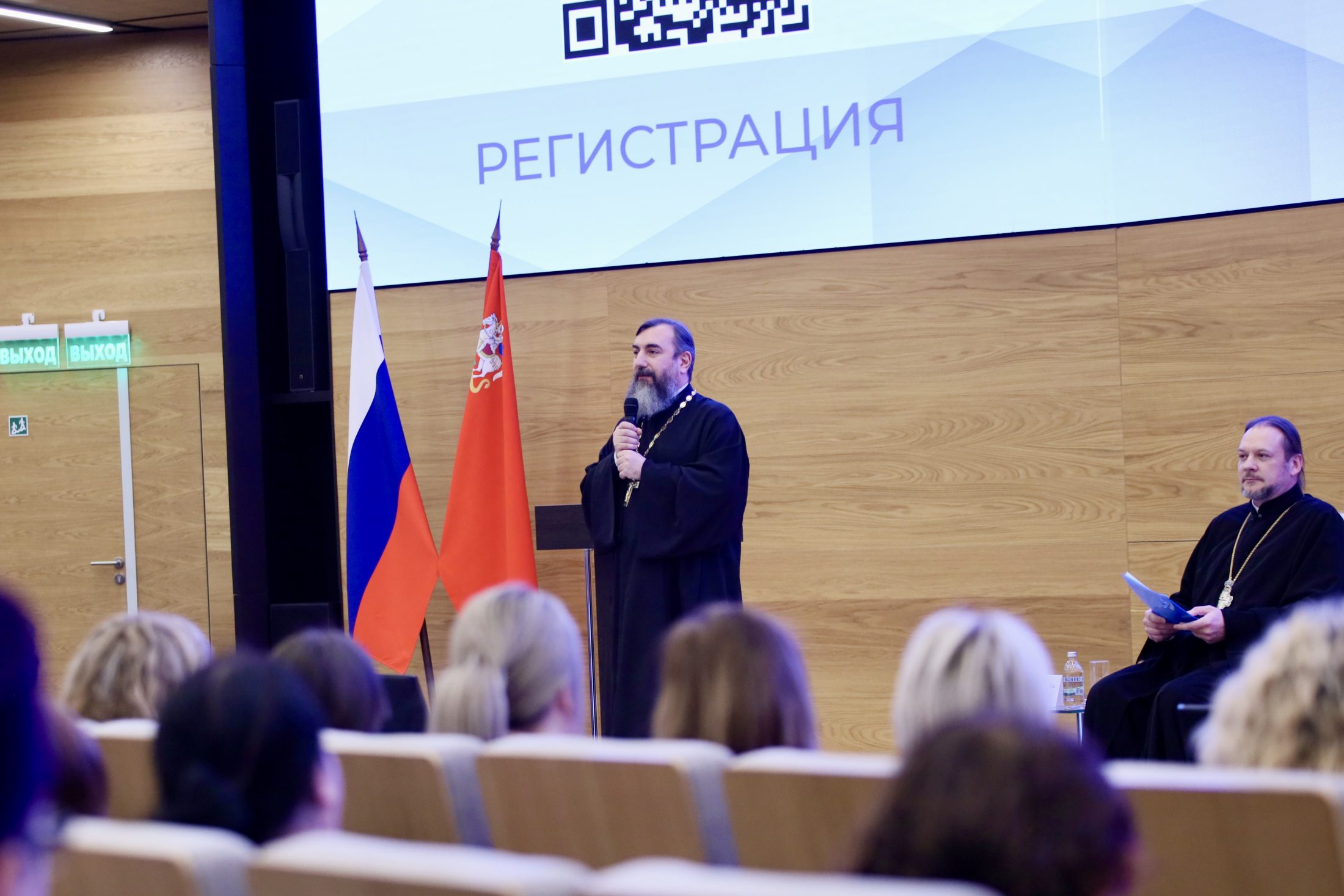 С приветственным словом ко всем присутствующим обратились министр образования Московской области И.В. Пильдес и председатель Межъепархиального отдела по координации духовно-просветительской, образовательной деятельности Московской митрополии протоиерей Сергий Якимов.