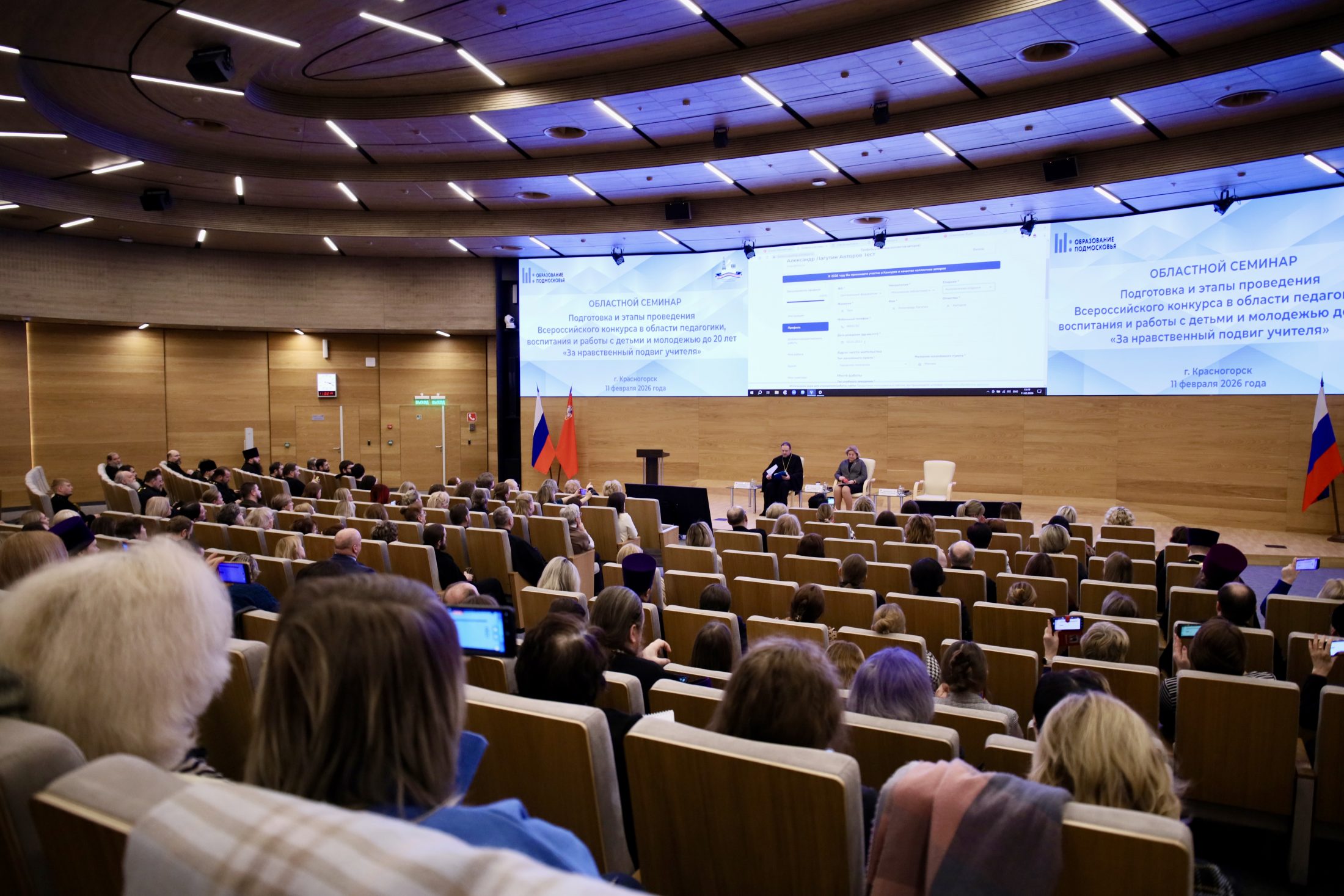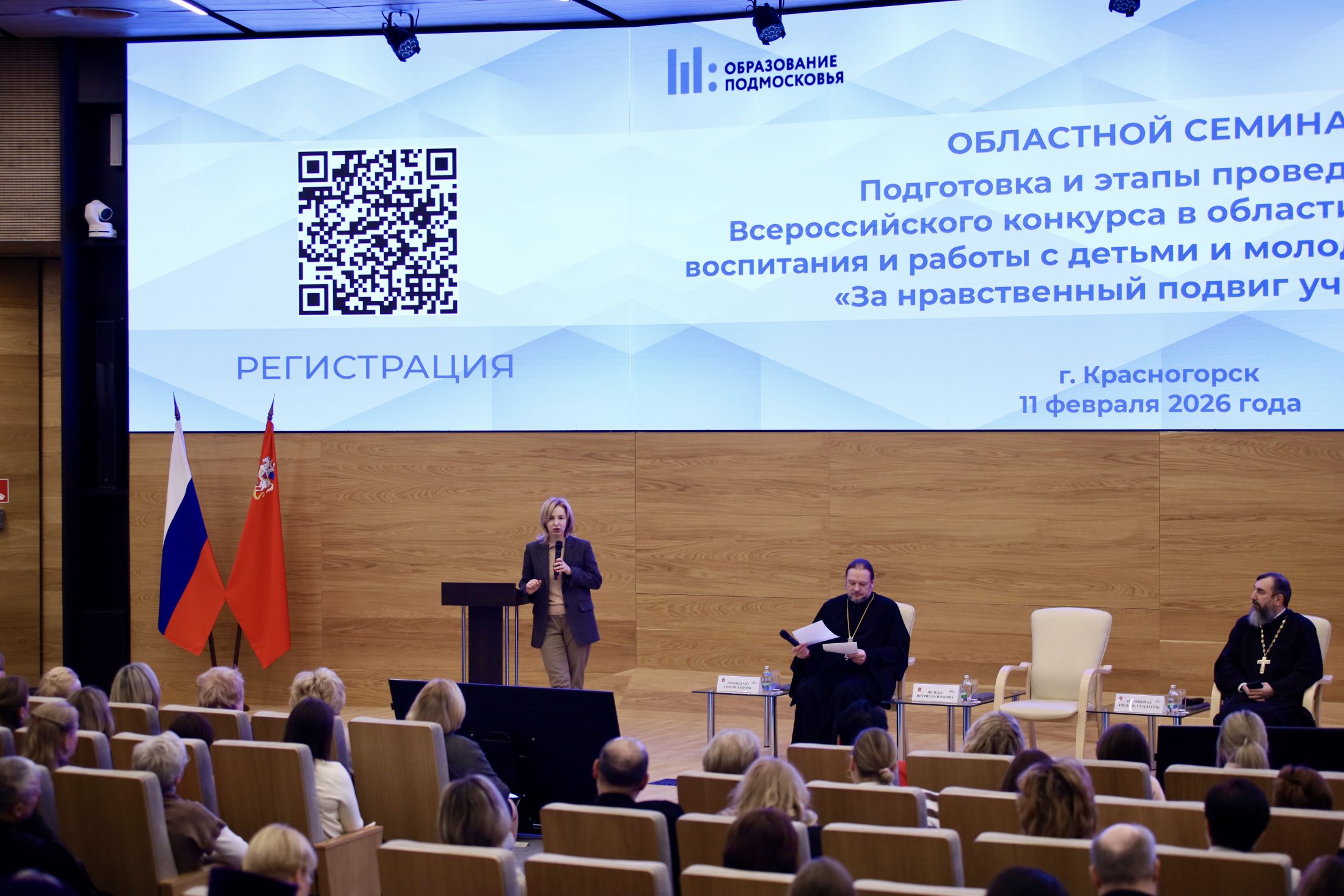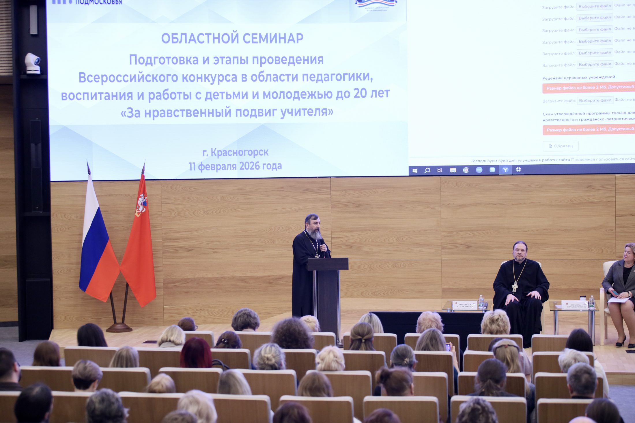 11 февраля 2026 года в административно-деловом центре «Новатор» г. Красногорска прошел семинар «Подготовка и этапы проведения Всероссийского конкурса в области педагогики, воспитания и работы с детьми и молодежью до 20 лет «За нравственный подвиг учителя».