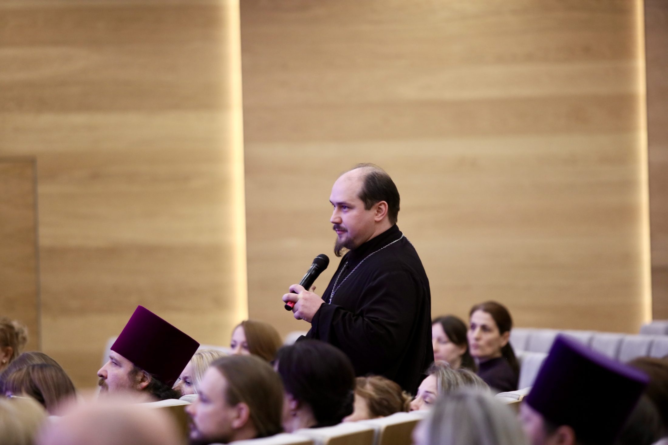 Главным спикером на встрече выступил заведующий сектором мероприятий и конкурсов Синодального отдела религиозного образования и катехизации иеромонах Трифон (Умалатов). Священнослужитель рассказал о функционале портала Всероссийского конкурса в области педагогики, работы с детьми и молодежью до 20 лет «За нравственный подвиг учителя» и ответил на многочисленные вопросы педагогов.