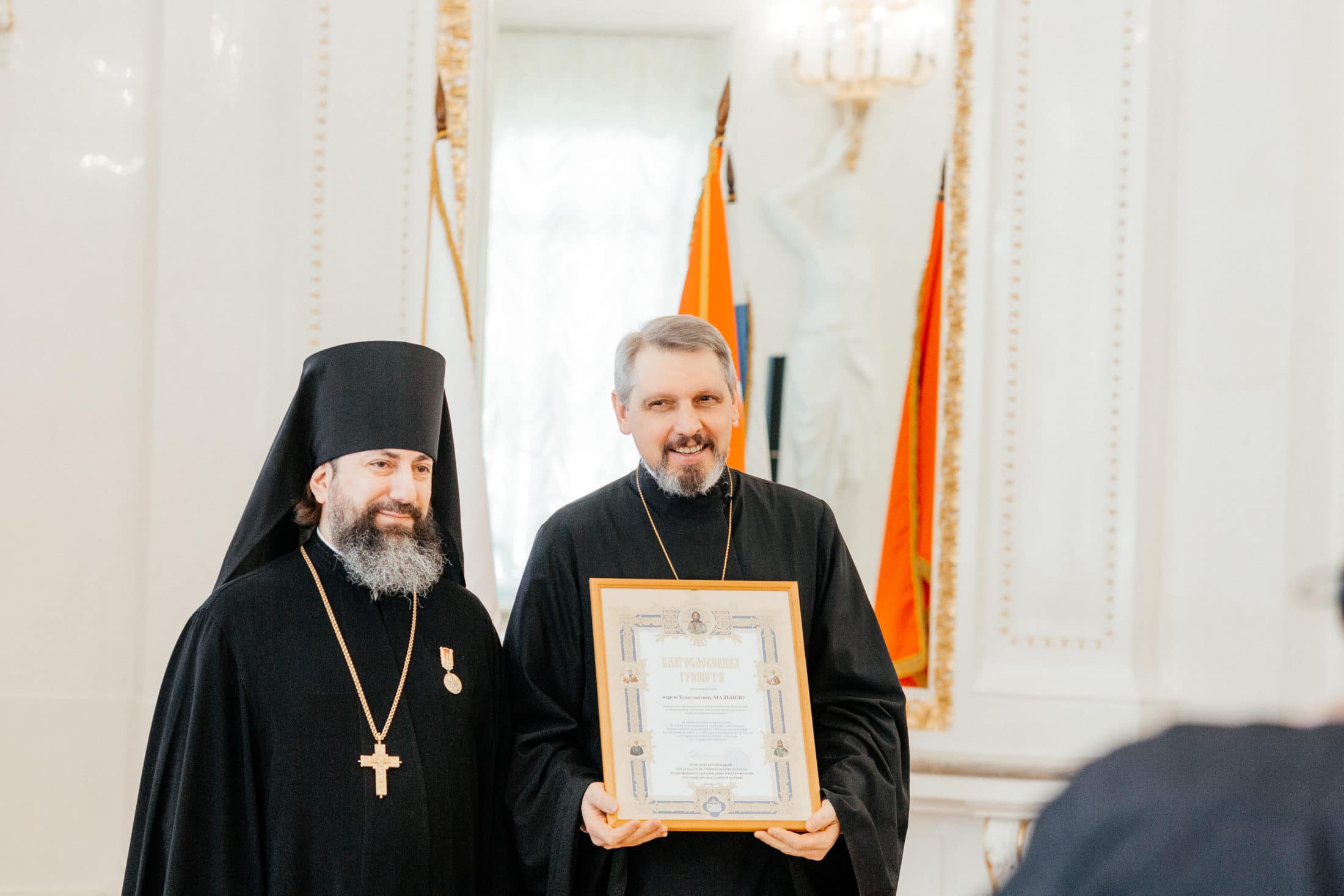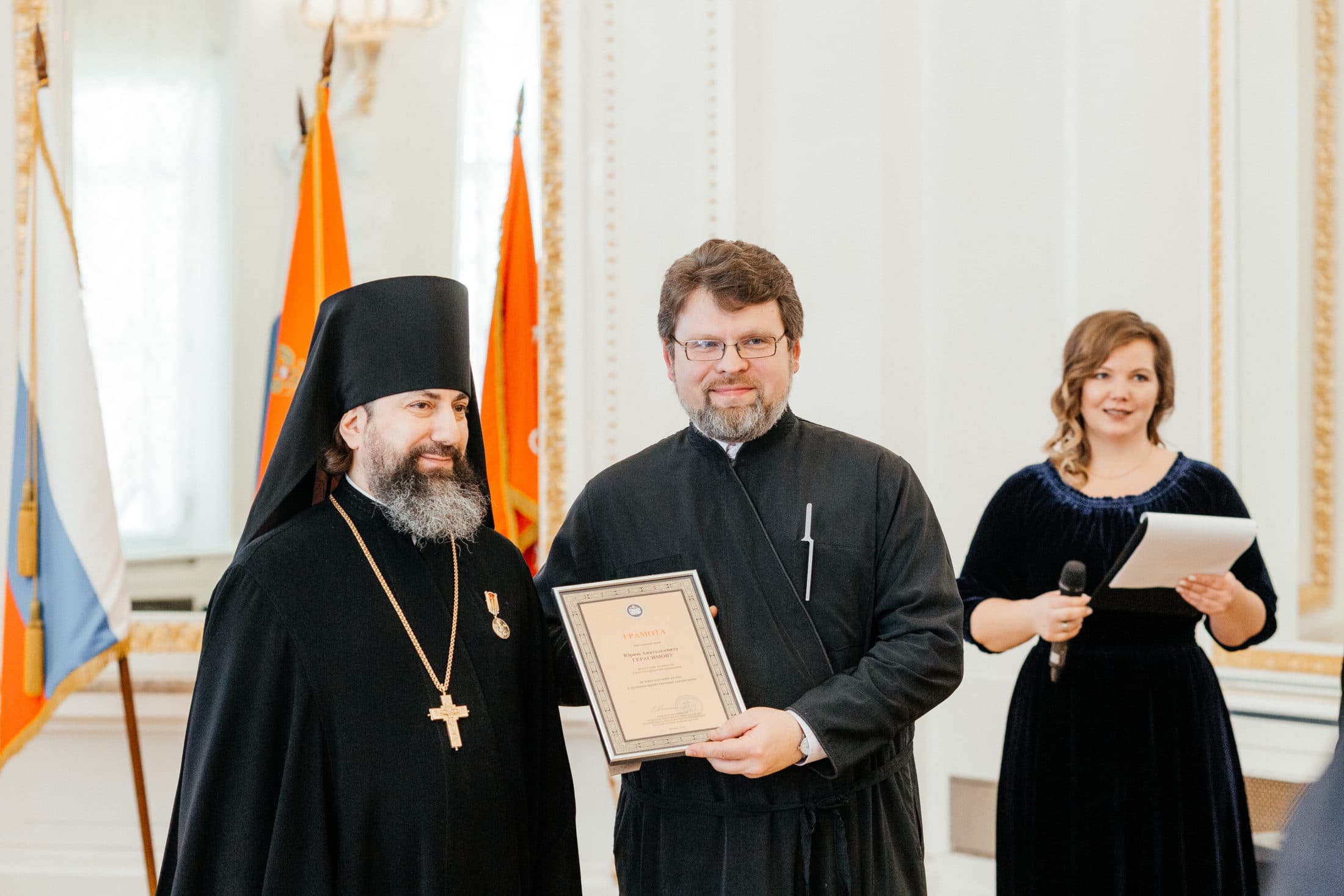 Руководитель сектора мероприятий и конкурсов Синодального отдела религиозного образования и катехизации иеромонах Трифон (Умалатов) вручил грамоты Синодального отдела: