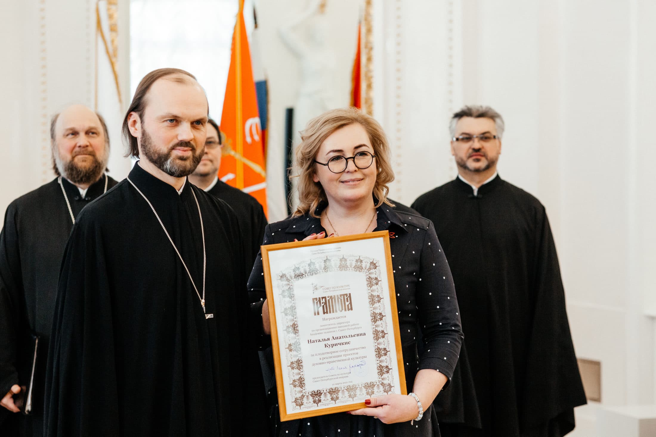 10 марта 2021 года в «Академии талантов» Каменноостровского дворца состоялась церемонии награждения деятелей образования и культуры за заслуги в области духовного просвещения в год 800-летия со дня рождения святого князя Александра Невского.