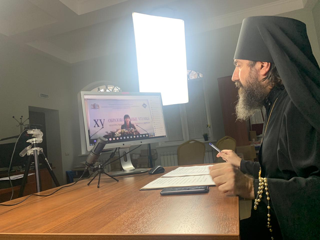 В рамках чтений состоялось выступление руководителя сектора мероприятий и конкурсов Синодального отдела религиозного образования и катехизации иеромонаха Трифона (Умалатова). Отец Трифон рассказал об основных итогах окружного этапа.