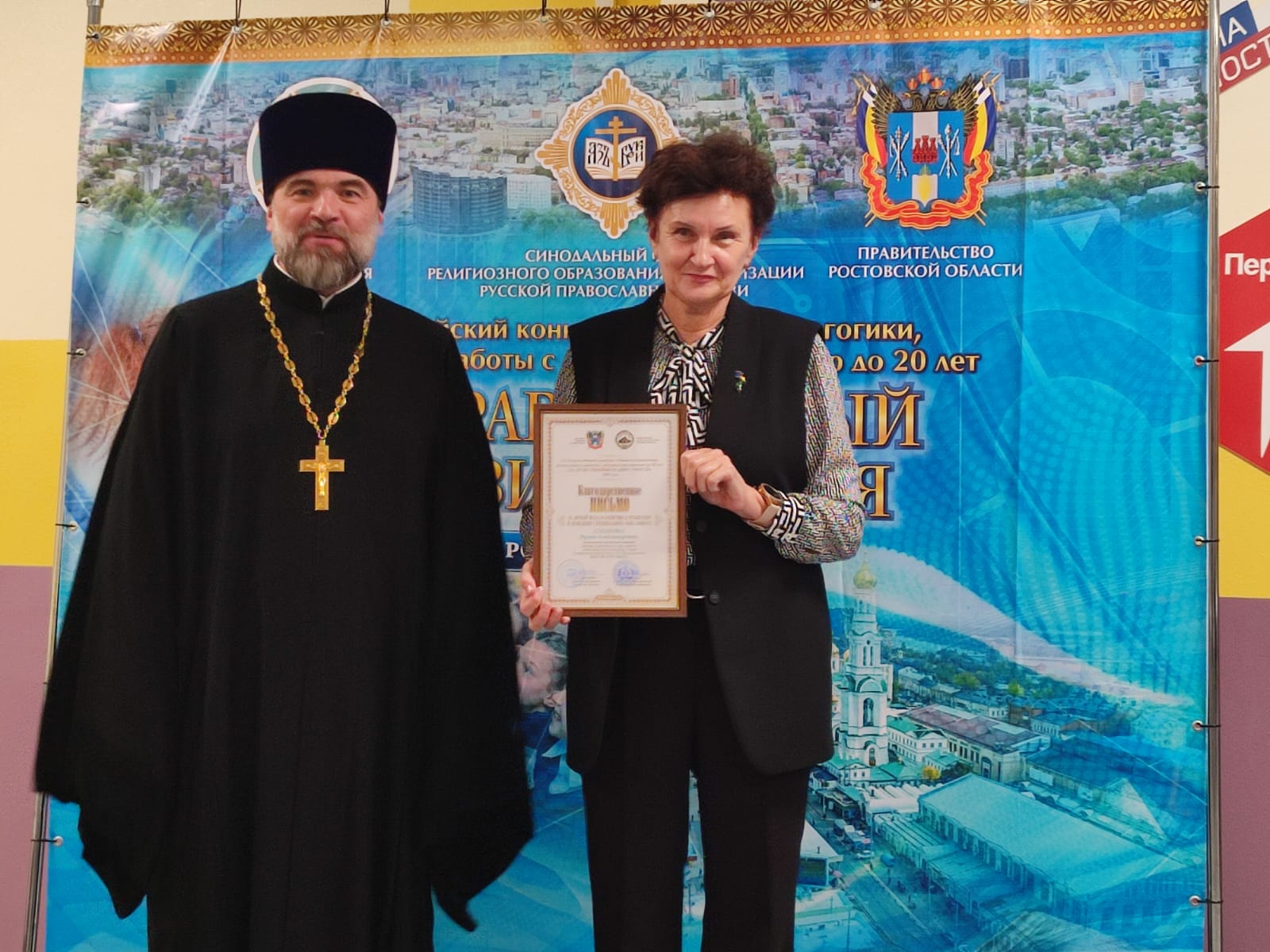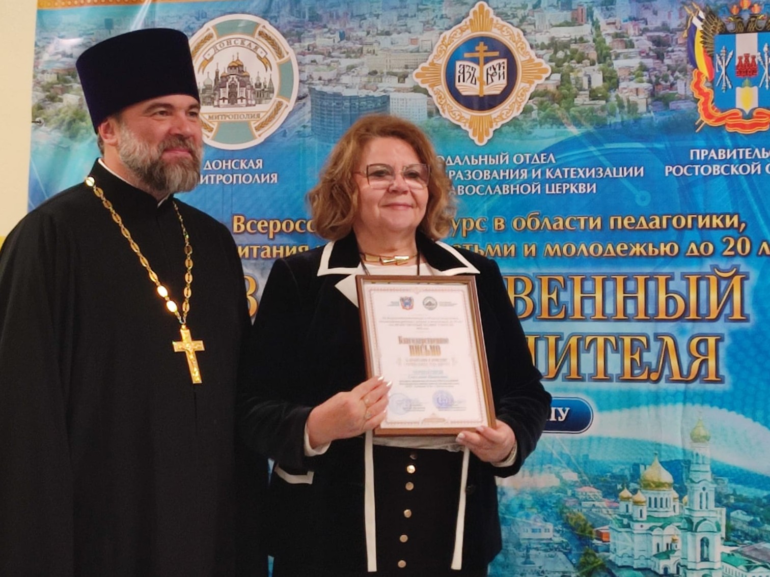 Иерей Александр Верченко, советник главы Донской митрополии по вопросам религиозного образования и катехизации, вручил благодарственные письма за личный вклад, содействие в организации и проведении I (регионального) этапа Всероссийского конкурса «За нравственный подвиг учителя» в Донской митрополии членам конкурсной и экспертной комиссий.
