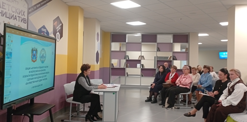 В МАОУ СОШ № 60 города Ростова-на-Дону в рамках областной учительской конференции «Духовно-нравственное просвещение, воспитание детей и молодежи в контексте вызовов времени» работала секция «Успешные социокультурные практики Всероссийского конкурса в области педагогики, воспитания и работы с детьми и молодежью до 20 лет «За нравственный подвиг учителя».