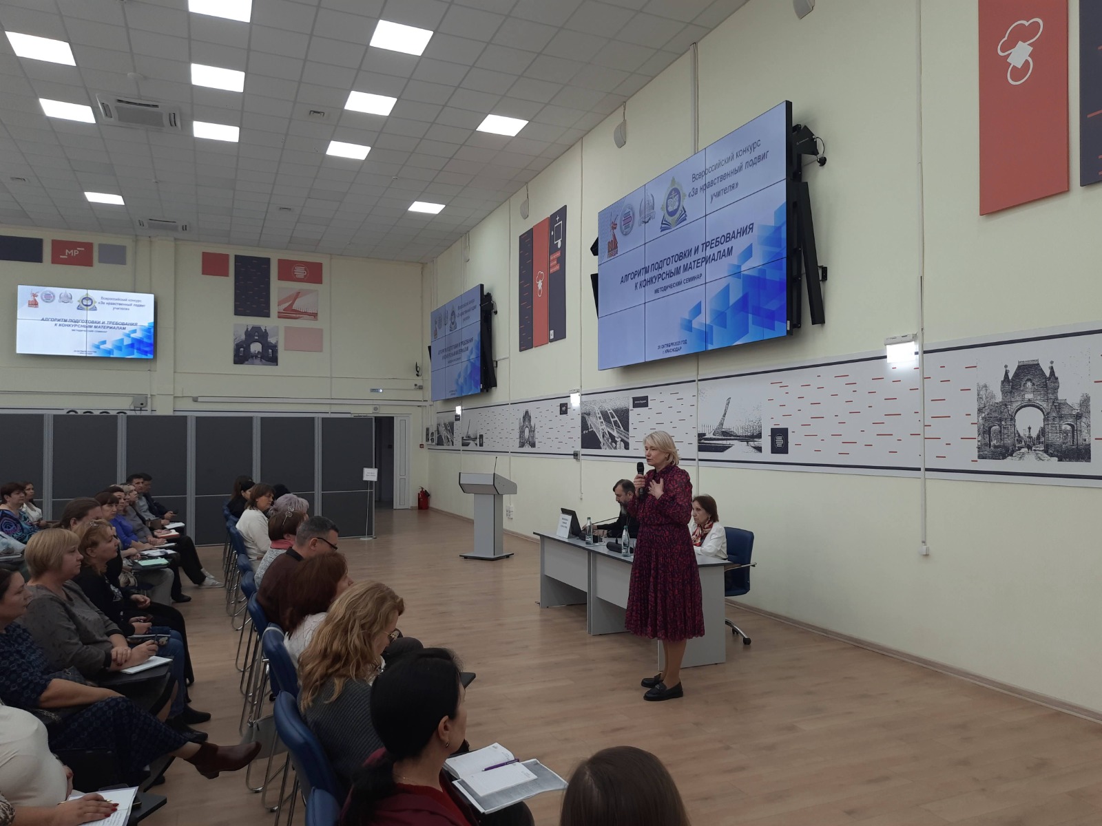 20 октября 2025 года на базе государственного бюджетного образовательного учреждения дополнительного профессионального образования «Институт развития образования» Краснодарского края был организован и проведен региональный научно-методический семинар для потенциальных участников Всероссийского конкурса в области педагогики, воспитания и работы с детьми и молодежью до 20 лет «За нравственный подвиг учителя». В мероприятии приняли участие более 60 человек на площадке ГБОУ ИРО Краснодарского края и более 70 (по видеотрансляции) специалистов краевой системы образования — муниципальные координаторы, руководители, заместители руководителей образовательных организаций, педагоги, участники конкурса.