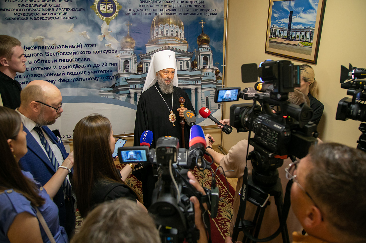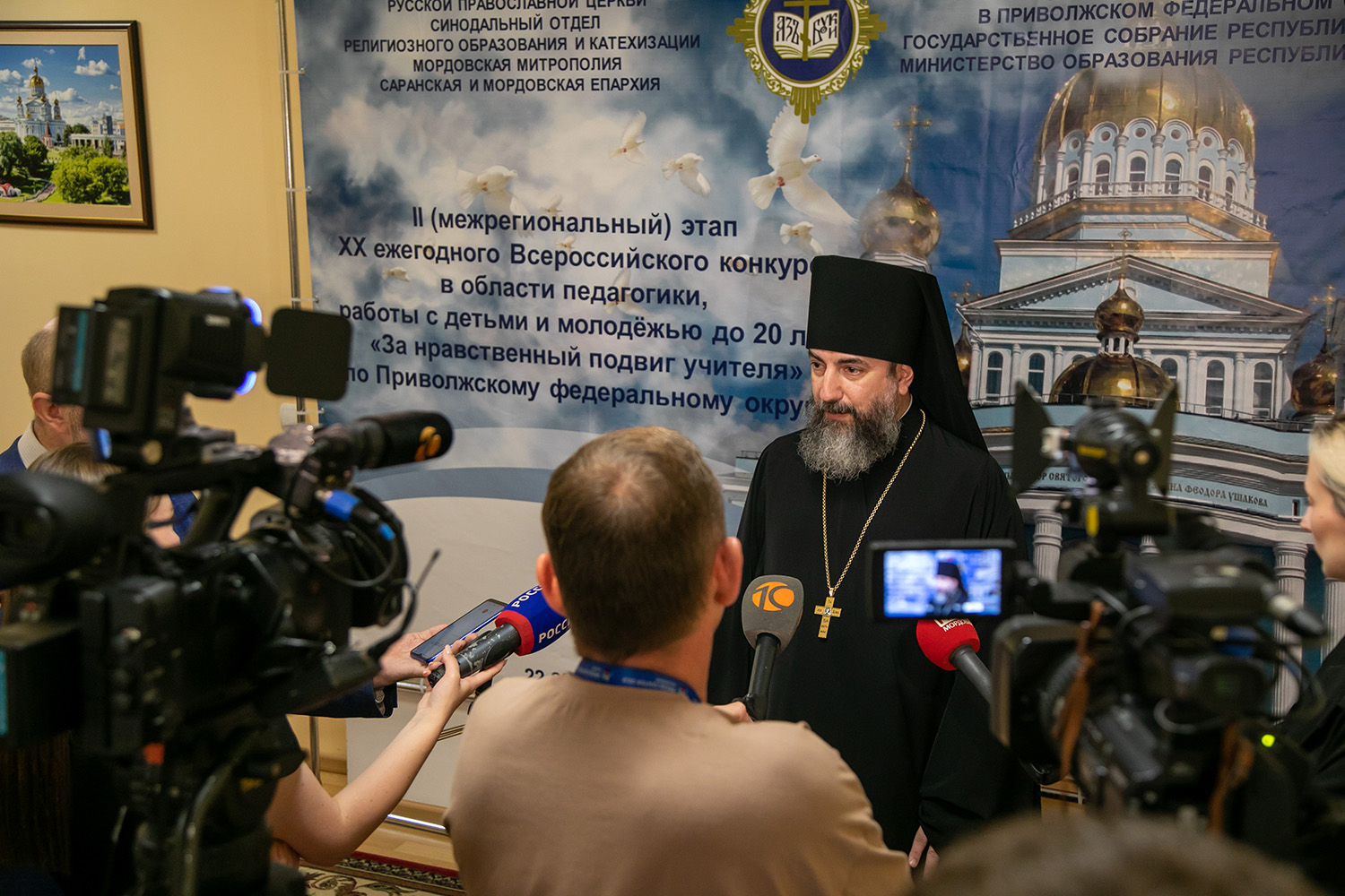 По окончанию литургии в здании Государственном собрании Республики Мордовия состоялось торжественное открытие II межрегионального этапа Всероссийского конкурса «За нравственный подвиг учителя» по Приволжскому федеральному округу. Участников из разных регионов Поволжья приветствовали митрополит Саранский и Мордовский Зиновий; председатель Государственного собрания Владимир Чибиркин; иеромонах Трифон (Умалатов).