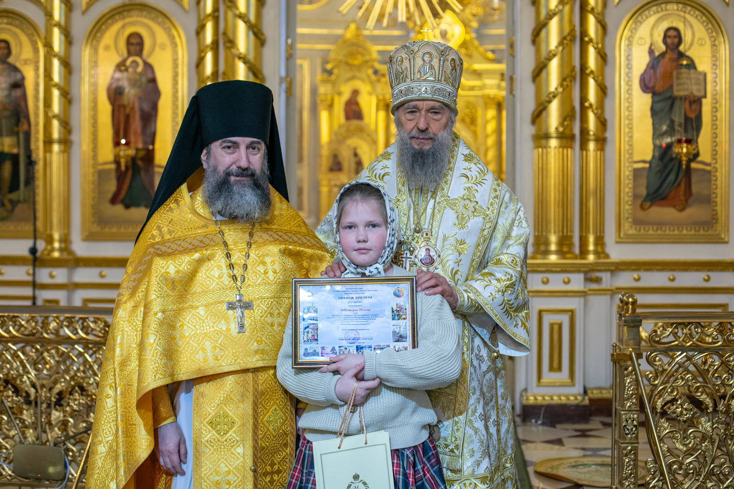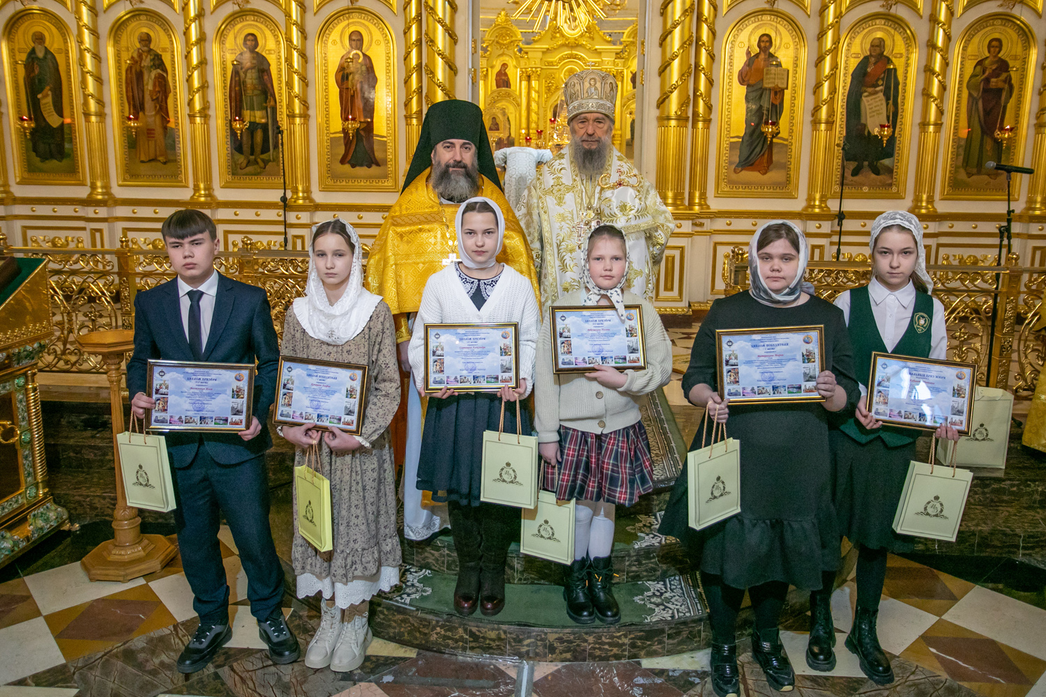 По окончании Литургии состоялось награждение победителей и призеров XXI Всероссийского конкурса рисунков «Красота Божьего мира», проходящего в рамках XXXIV Международных Рождественских образовательных чтений «Просвещение и нравственность: формирование личности и вызовы времени».
