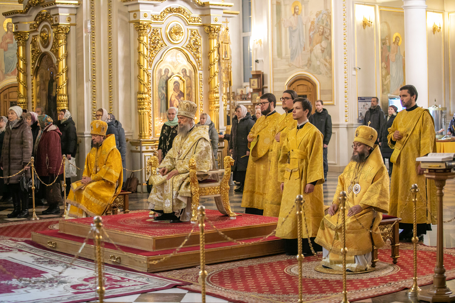 19 декабря 2025 года, в день памяти святителя Николая, архиепископа Мирликийского, в кафедральном соборе святого праведного воина Феодора Ушакова архиереи Мордовской митрополии совершили праздничную Божественную Литургию. Митрополиту Саранскому и Мордовскому Зиновию, епископу Краснослободскому и Темниковскому Клименту, епископу Ардатовскому и Атяшевскому Мелетию сослужили: заведующий сектором мероприятий и конкурсов Синодального отдела религиозного образования и катехизации иеромонах Трифон (Умалатов), прибывший в Саранск для участия в региональном этапе XXXIV Международных Рождественских образовательных чтений, ключарь собора, секретарь Саранской епархии протоиерей Виктор Хохлов, благочинный церквей Центрального округа протоиерей Алексий Селезнев, ректор Саранской Духовной Семинарии протоиерей Алексий Зверев, проректор – протоиерей Павел Горбунов, председатель епархиального отдела религиозного образования и катехизации иерей Максим Артемьев, клирики главного храма республики.