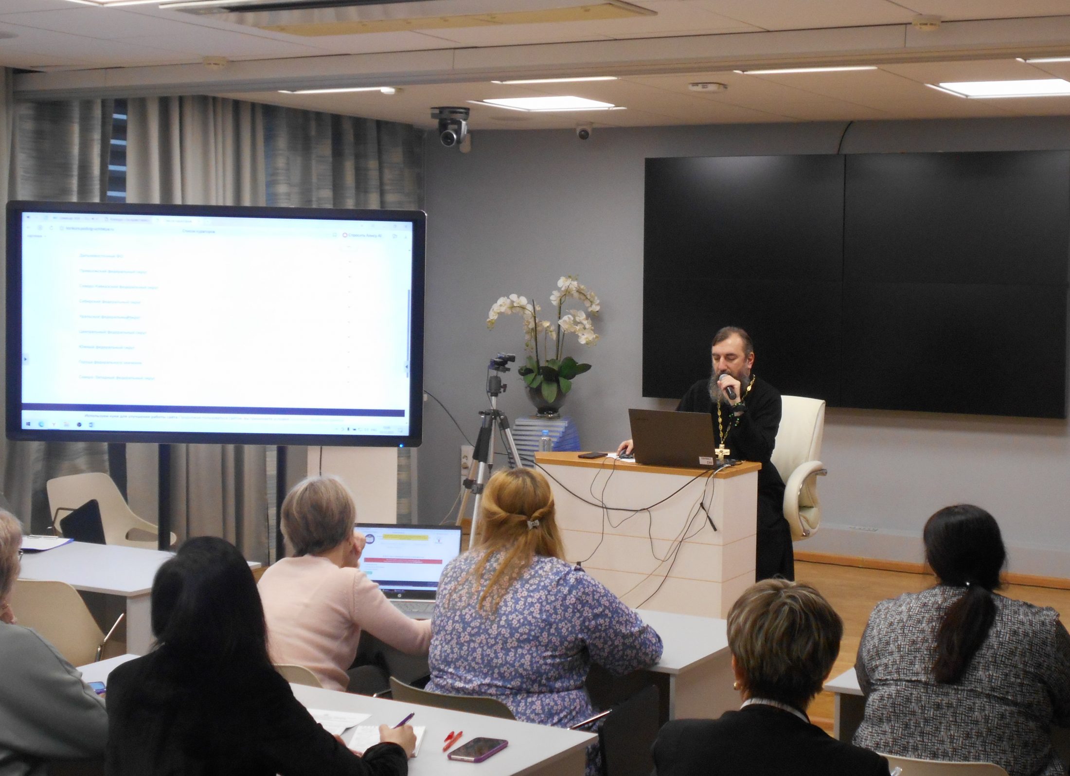 Семинар провёл заведующий сектором мероприятий и конкурсов Синодального отдела религиозного образования и катехизации, исполнительный директор координационного комитета конкурса «За нравственный подвиг учителя», президент АНО «Поколение» иеромонах Трифон (Умалатов).