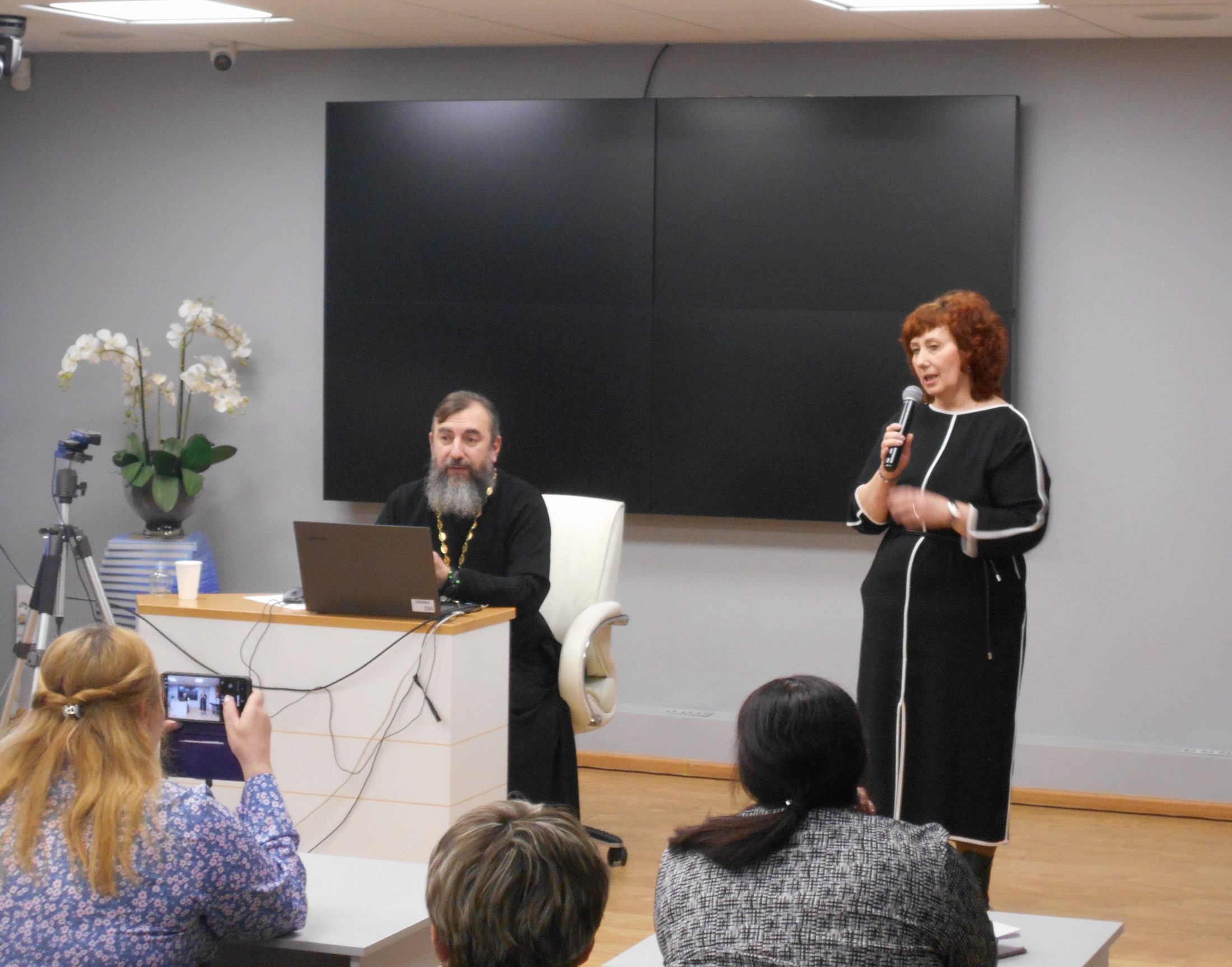 Светлана Шутова, заместитель председателя ОРОиК Тобольской епархии в своем выступлении напомнила собравшимся, что в Тобольской епархии на базе ОРОиК создан методический центр, который оказывает методическую поддержку при организации региональных проектов и конкурсов, и в 2026 году она исполняет обязанности координатора конкурса. Она отметила, что по окончании работы семинара ДОН ТО совместно с ОРОиК Тобольской епархии сформируют соответствующее информационное письмо, где будет указаны ссылки для подачи документов на конкурс, где можно подробно ознакомиться с пакетом документов о конкурсе (Положение о Конкурсе, Сборник работ победителей и лауреатов регионального этапа, методические рекомендации и презентации экспертов).